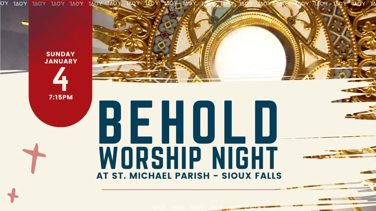 Behold is a time of prayer and praise that seeks to draw us into the heart of Jesus in the Holy Eucharist. It is an event held every 6-8 weeks in the Sioux Falls area that includes praise and worship, Eucharistic Adoration, and prayerful reflections. The event is free and open to the public.