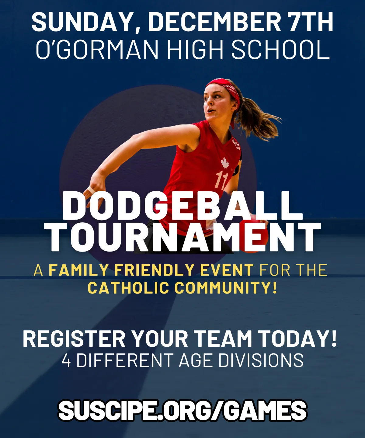 This event is being organized by Suscipe, a 501(c)(3) non-profit ministry based out of Sioux Falls dedicated to ministering to Catholic youth and young adults. The event is being hosted at O'Gorman High School. Aside from offering a joyful Catholic Community building events, the goal is to raise awareness about the ministry of Suscipe and to raise funds to support it's work.